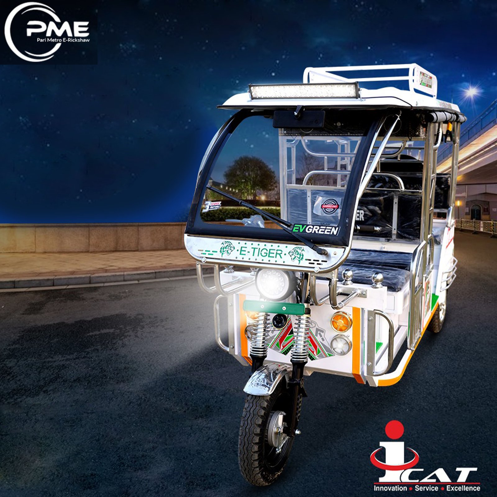 The PARI METRO E-RICKSHAW represents a pinnacle in electric rickshaw innovation, designed to redefine urban commuting with its advanced features and functionality. This three-wheeled electric vehicle boasts a striking blend of style, efficiency, and sustainability, making it an ideal choice for modern city transport.
